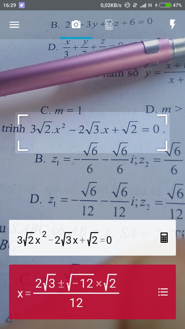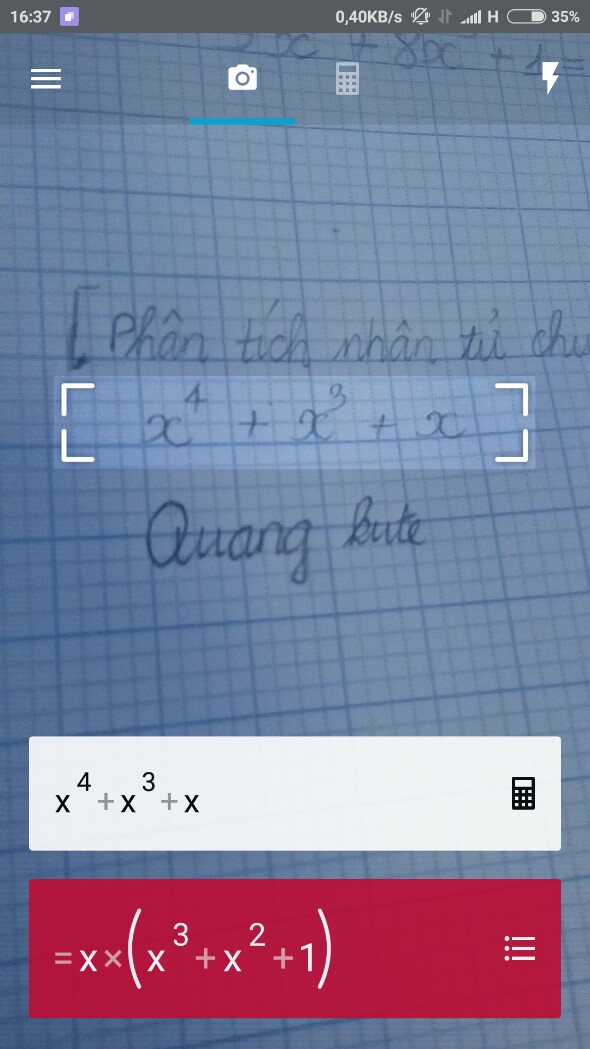 Chỉ cần đặt camera sao cho khung hiển thị quét toàn bộ phép tính , đáp án sẽ ngay tức khắc hiển thị , tạm gọi là tốc độ bàn thờ nhé...